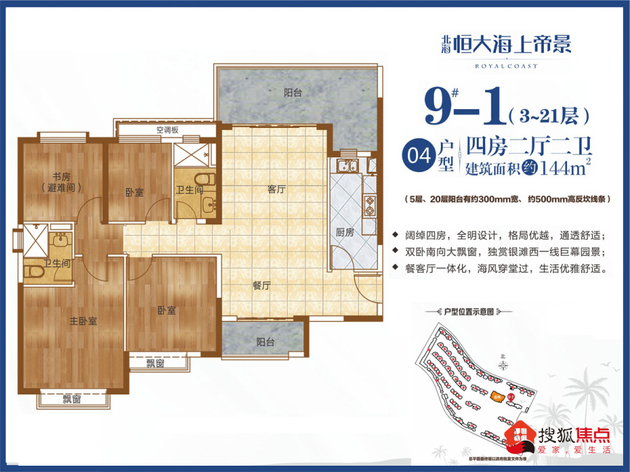 04户型 建面约144平 四房两厅-4室2厅2卫-144.0㎡
