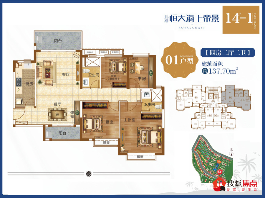01户型 建面约137平 四房两厅-4室2厅2卫-137.7㎡