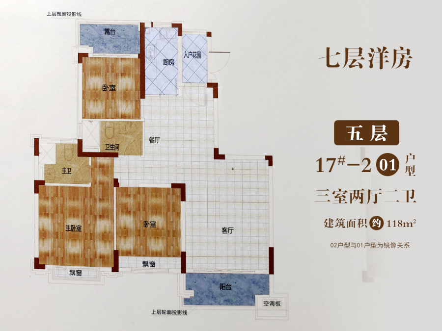 01户型 建面约118平 三室两厅-3室2厅2卫-118.0㎡
