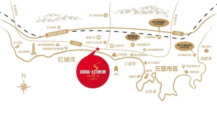 三亚国瑞红塘湾位于三亚市区红塘湾,东侧挨这天涯小镇,和天涯海角景区,项目距离海边仅300米左右。