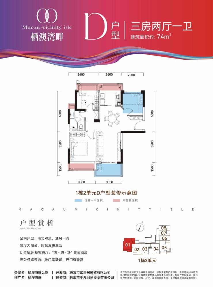 🔺D户型:建筑面积约74㎡,阔绰三居,三代同堂/会客都够用