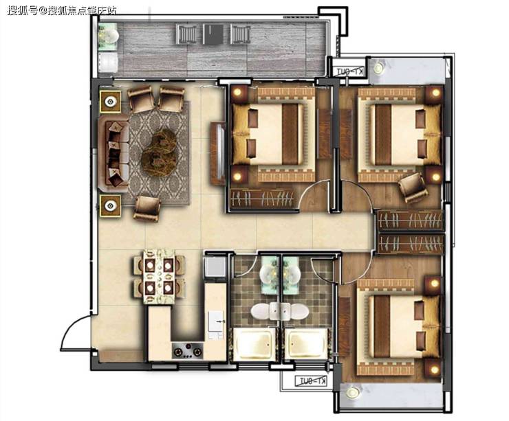 建筑面积100-108㎡ 3房2厅2卫
