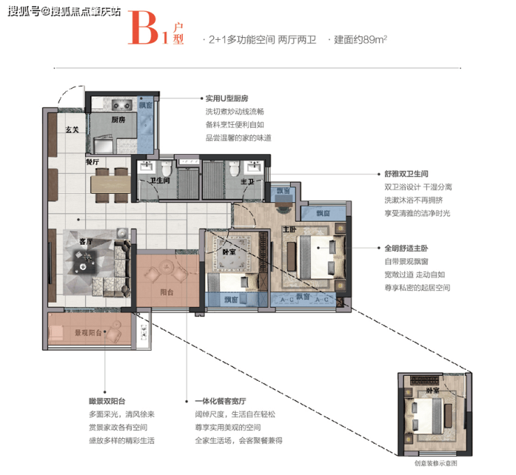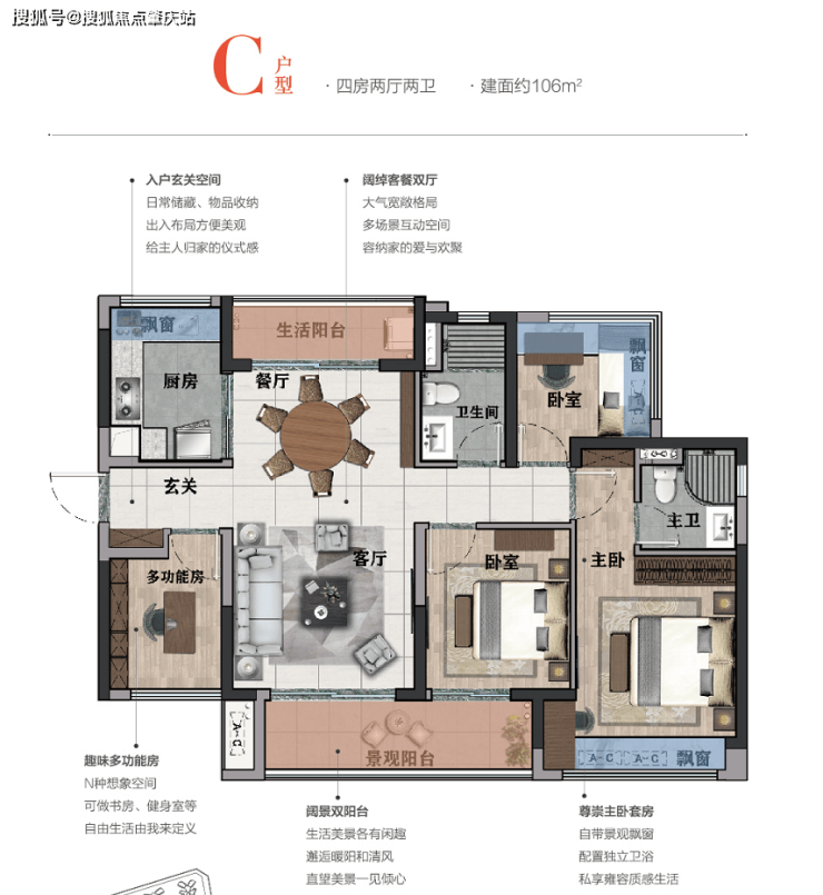 高层:北滘惟一全四开间朝南打造,82-104㎡高赠送率带装3-4房,超高使用率