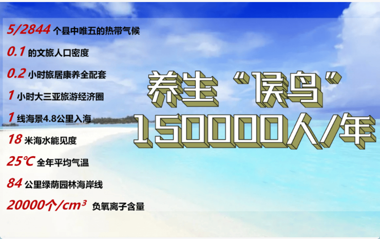 乐东的九所新区是海南省的“重点城镇建设示范区”,处于大三亚圈重点发展区域,它距离三亚市区55公里,途径天涯海角、南山寺、大小洞天、海南最大的渔港市场——崖城中心渔港。项目距离龙栖湾旅游度假区(海边)仅有5公里,西面是龙腾湾及最美落日海滩——龙沐湾,长隆乐园(待建)距离项目15公里,北边紧靠尖峰岭国家森林公园,住在这里尽享丰富的旅游资源。因此九所新区是海南省候鸟群体最多的区域,每年来九所片区过冬的候鸟人数超过20万人。