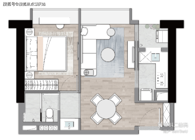 E户型 建筑面积约63㎡ 一房一厅一卫
