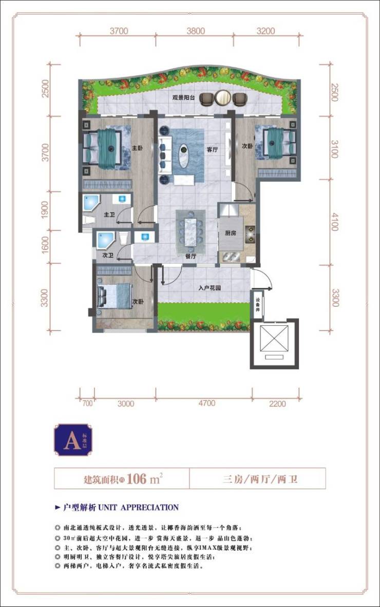A户型 三房两厅两卫双阳台