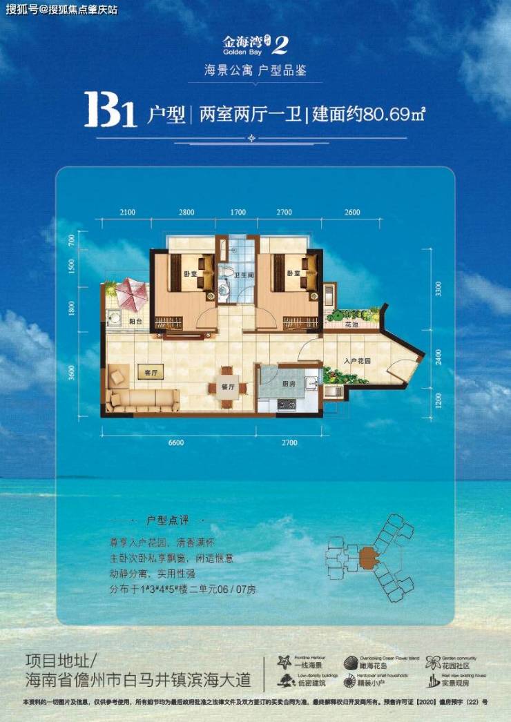 在海南限购政策前规划获批的低于100平米的稀缺小户型,设计精巧,明厨明卫,1.8米超宽大阳台,141米超宽楼间距。