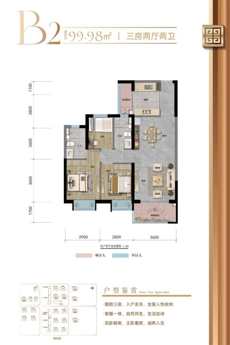 项目总建面约42万平方米,规划有22栋住宅楼(目前已全面封顶)及完善的商业、教育配套,建成后将提供2700余套高品质安居房。首批房源共511套,将于4月启动报名。建筑面积约99-120㎡的品质雅居,主力全能三房户型,科学布局,空间利用率极高,既能满足二人世界的浪漫,也能承载三口之家的温馨,更能安放三代同堂的圆满。