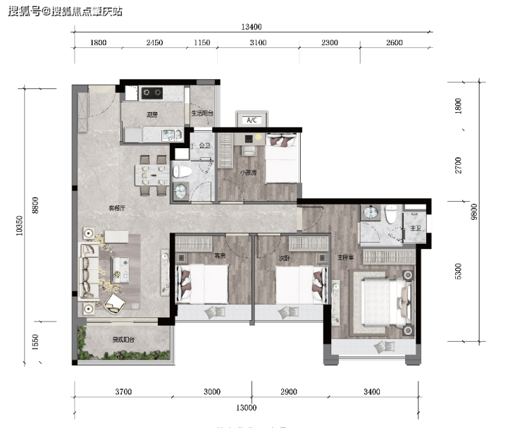 【112㎡四房两厅两卫】罕见112㎡户型四房产品,约3.7米开间,3.4米主卧开间