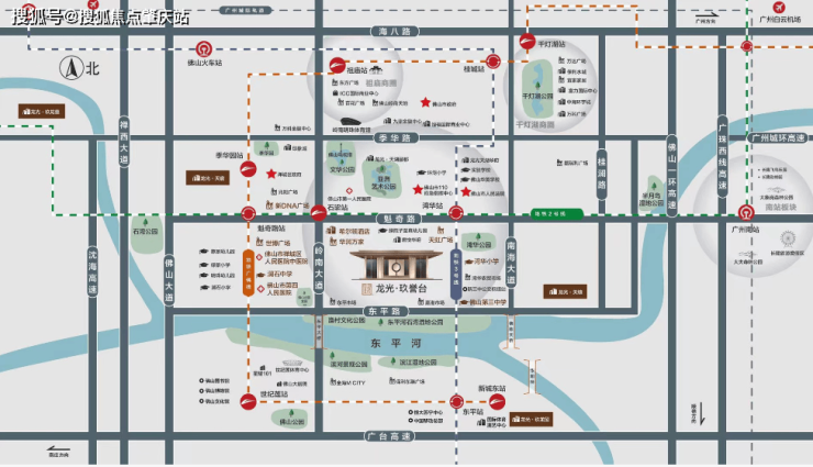 雄踞禅城中心魁奇中轴—广佛融城主动脉,约20min直达广州南站。项目周边均为成熟品牌高端小区,临近东平河属高端滨江住宅区,城市界面干净整洁,一站式醇熟配套。
