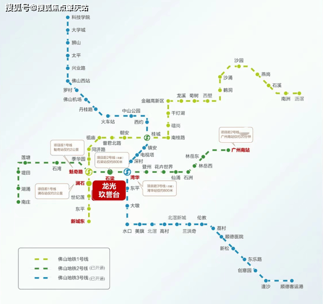 地铁2号线和3号线已开通,1站佛山新城,4站桂城,5站祖庙,7站直达广州南站。