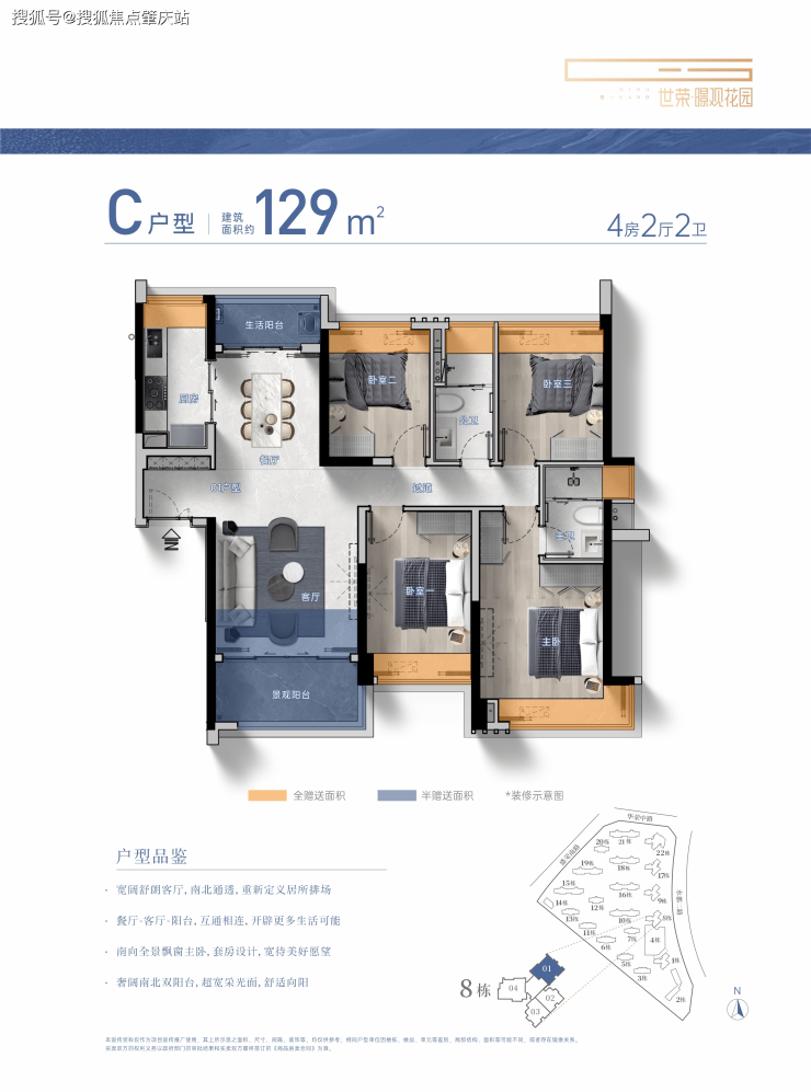 建筑面积约104-229㎡3-4房美学平层,着落其间