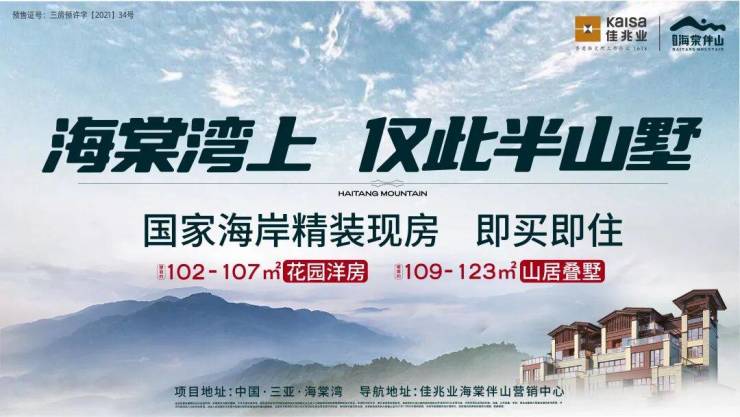 项目地址:三亚·国家海岸·海棠湾南田路佳兆业海棠伴山营销中心(方大太阳城南侧约15米)