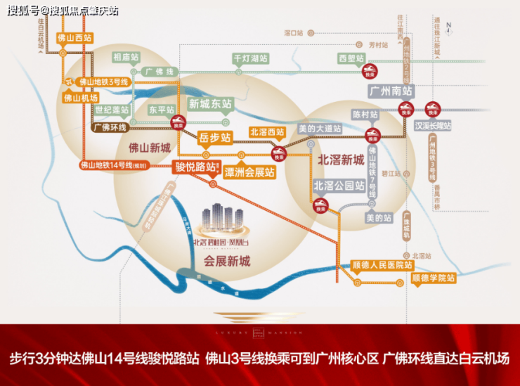 直距 4 公里佛山新城 直距 6 公里北滘新城