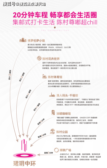 珺玥中环"动"有中心商圈加持 , "静"有文体公园陪伴 , 集嗨购商业、潮玩打卡、自然公园、优质教育、高端医疗于一体的城熟资源聚集地,集邮式打卡生活 , 陈村很chill很治愈。
