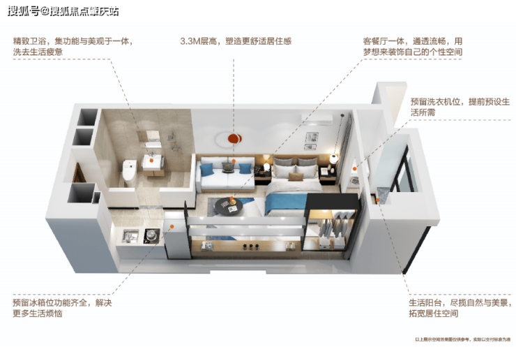 项目由1栋天际公寓及1栋地标住宅和裙楼商业组成。