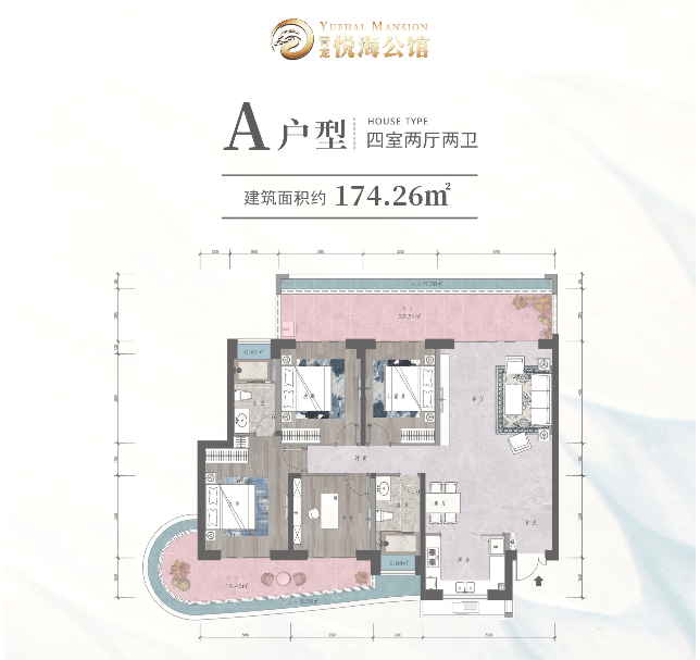 A户型 建面约174.26㎡ 四房两厅两卫