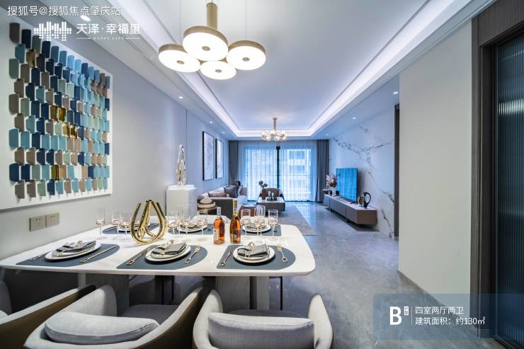 近4米面宽的客厅、餐厅一体化设计,让家人的欢声笑语尽情绽放;