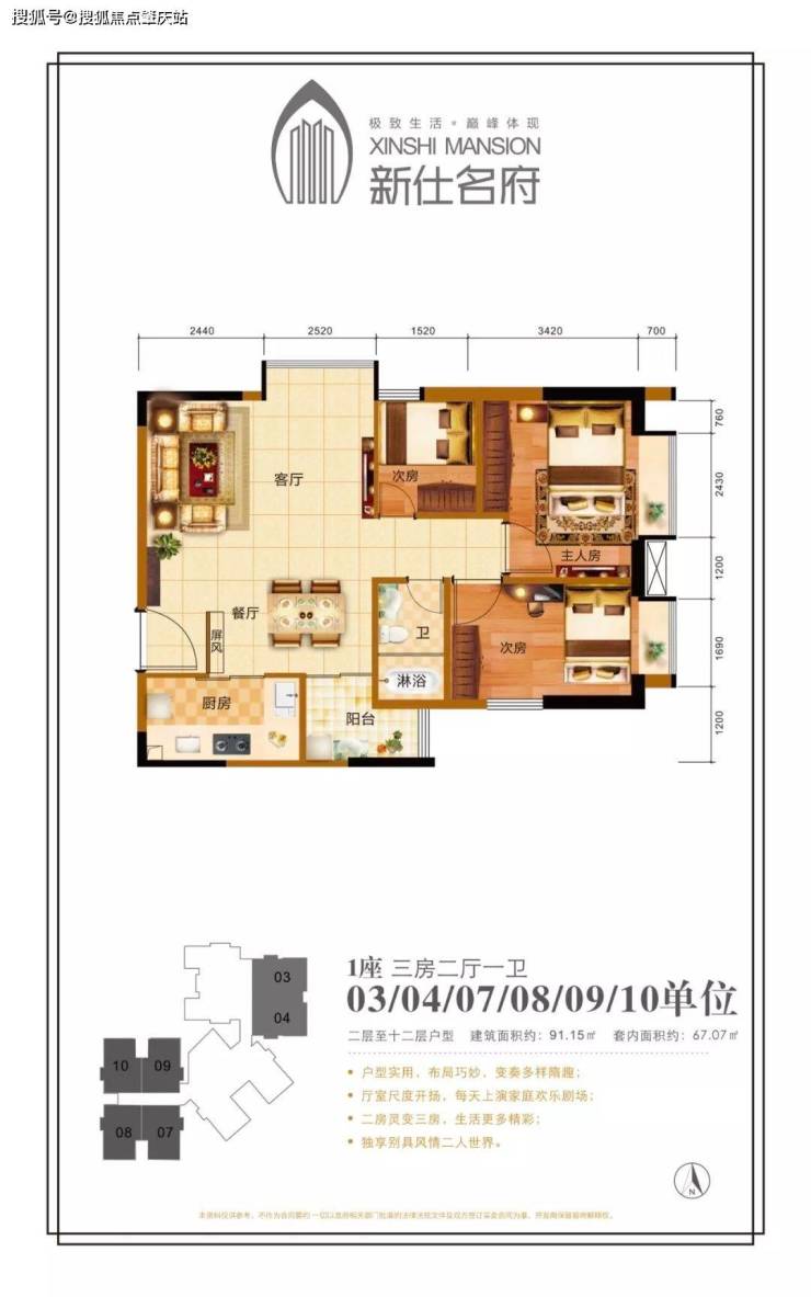 平层公寓:71-92㎡二至三房,层高3.1米,可明火,民用水电计价