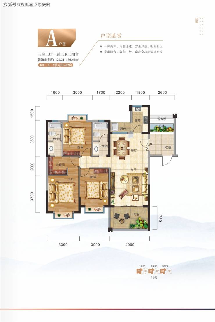 103-130㎡南北通透三房二厅,9797元/㎡起,精装交房,给您一个温馨的家(一梯两户至两梯四户)