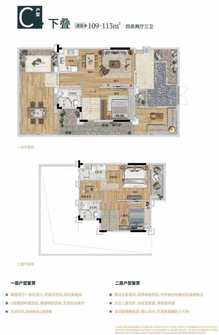 下叠:建筑面积约109-113㎡四房两厅三卫