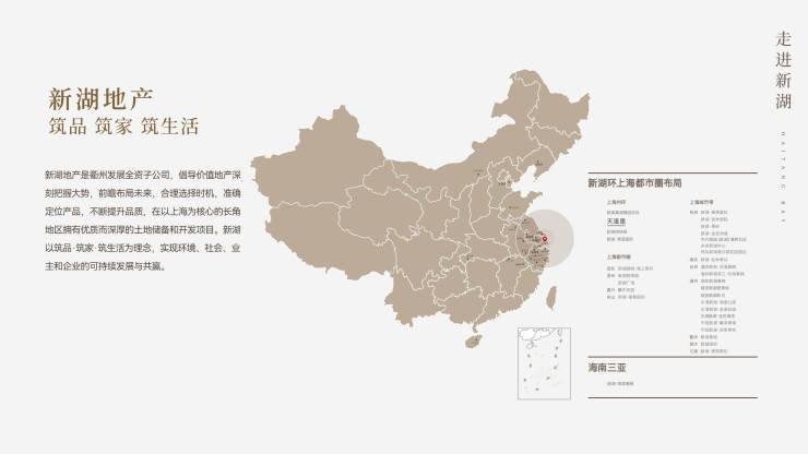 新湖地产是衢州发展全资子公司,倡导价值地产深刻把握大势,前瞻布局未来,合理选择时机,准确定位产品,不断提升品质,在以上海为核心的长角地区拥有优质而深厚的土地储备和开发项目。新湖以筑品·筑家·筑生活为理念,实现环境、社会、业主和企业的可持续发展与共赢。
