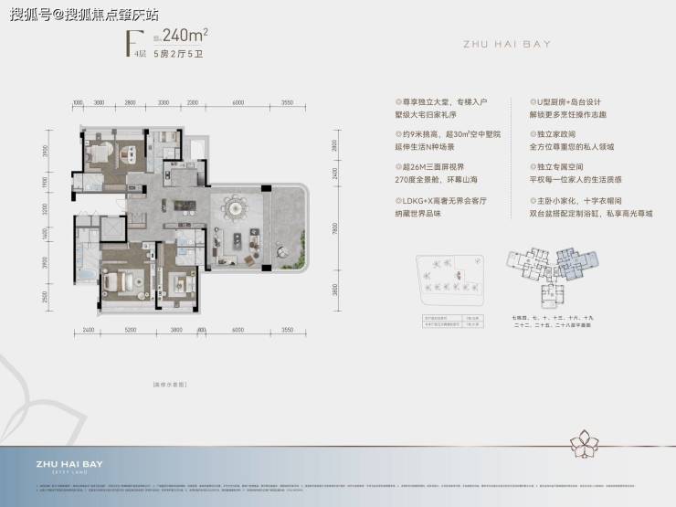 ▪产品|约88-142㎡高层阔景;约240㎡270度环幕山海景观、9米挑高空中墅院