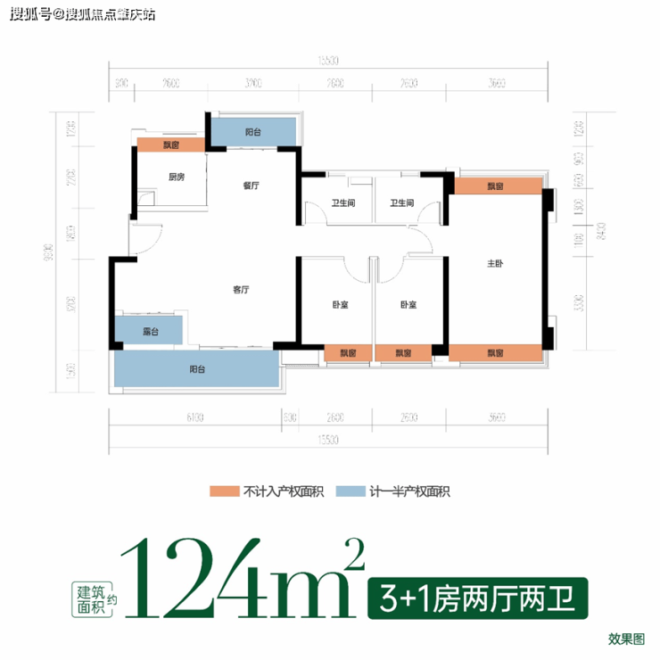主卧双飘窗+次卧等面宽飘窗,全赠送高拓空间