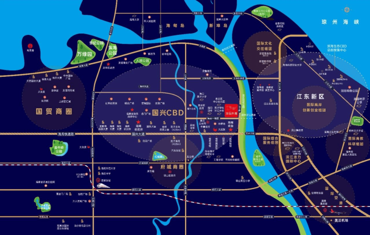 政治中心:省委省政府、省检察院、省自规厅、美兰区政府等。