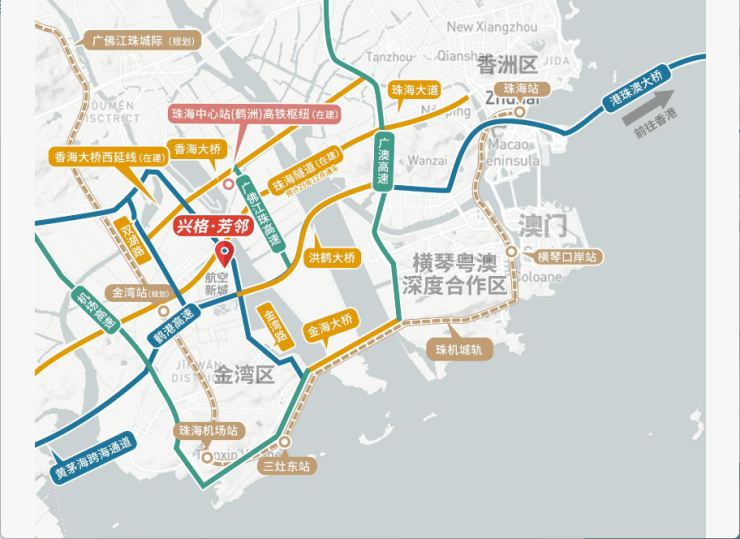 金湾航空城产业服务中心、金湾艺术中心、华发国际商务中心、金湾航空城公共文化中心、金湾区市民服务中心、金湾奥体中心(规划中),为居者提供高品质便捷生活