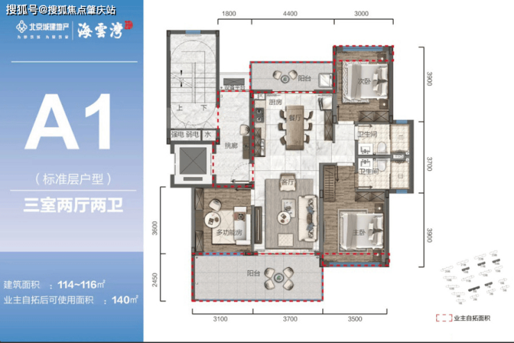 产品品质:纯板式建筑,现代简约风格,建筑质量和设计水平较高,装修标准为 3000 元 /㎡的精装修,可直接拎包入住。