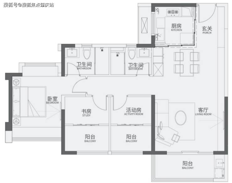 112户型 3+1房2厅2卫