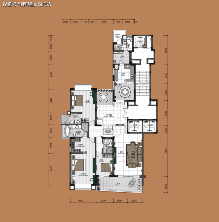 B户型:建面约264.74㎡、四房两厅四卫+工人房+超大入户花园(豪装)