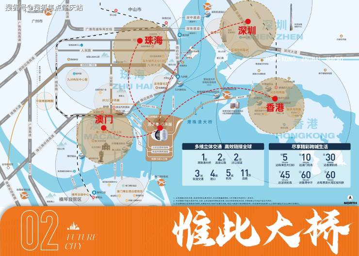 港珠澳大桥是大湾区国家战略、粤港澳融合的支点,串联深港珠澳四大特区,便捷通达港澳,1桥2路3轨4岸5机场11高铁海陆空轨立体交通,链接大湾区,中转全球。