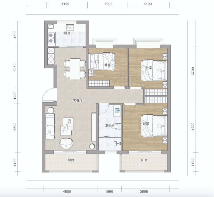 ◎舒适布局:客餐厨等动区,与卧室等静区分离,避免互相干扰