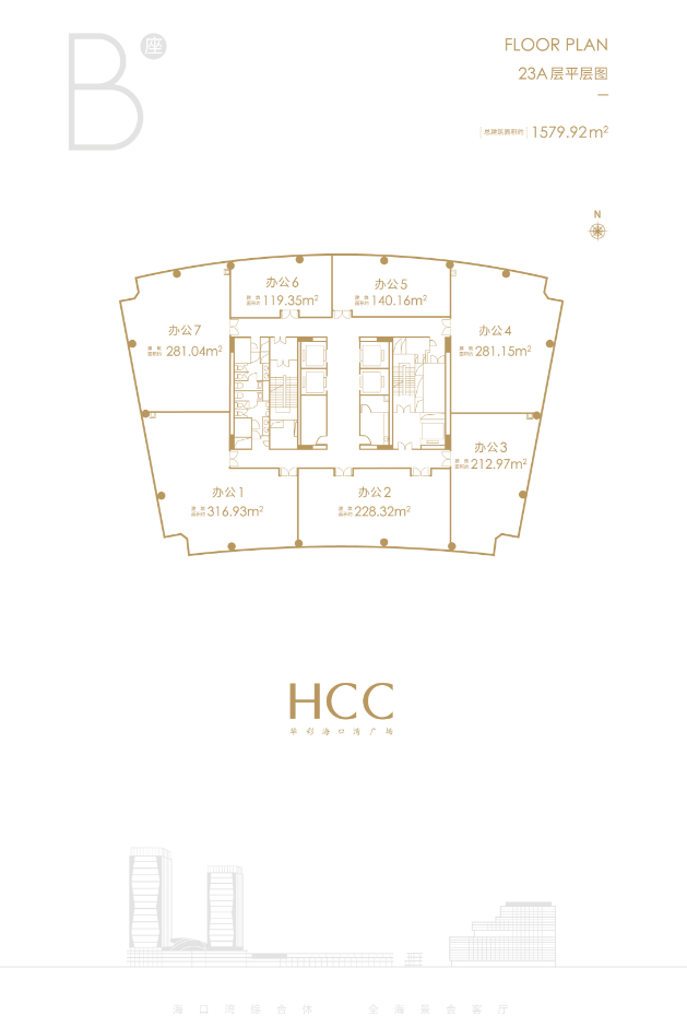 HCC,坐落于自贸港门户海口湾芯地带、世纪大桥畔,一岸对望滨海大道国贸商圈。