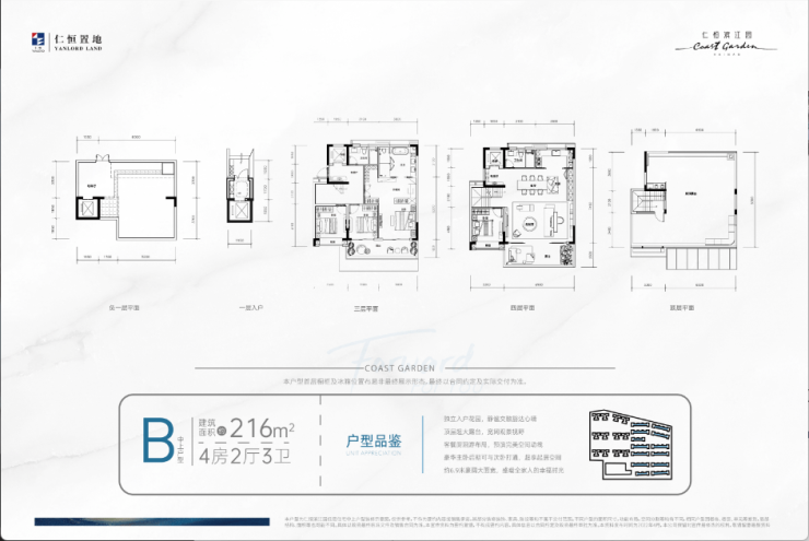 【B 中上户型 约216㎡四房二厅三卫】