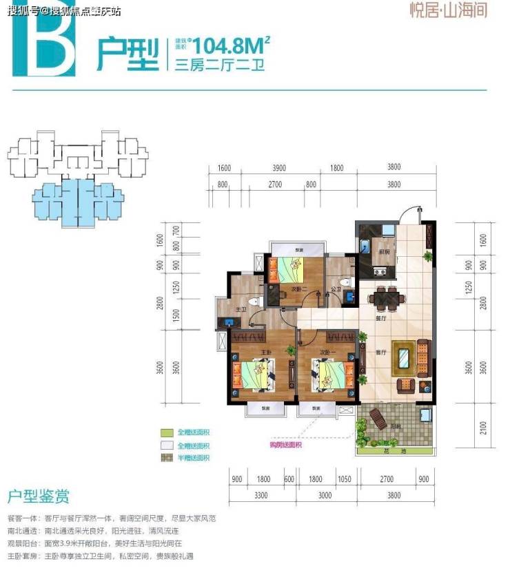 在售户型面积:约101㎡~106㎡