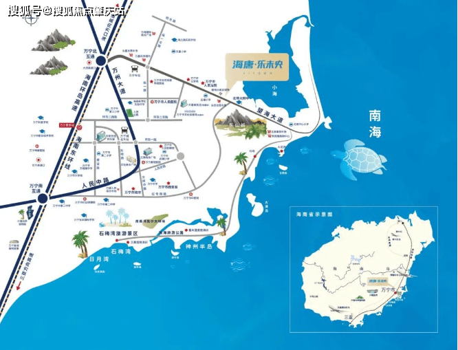 交通配套:近距三亚凤凰机场、海口美兰机场、琼海博鳌机场;拥享万宁站、神州站;毗邻 G98 环岛高速公路,项目距环岛高速和环岛高铁万宁站约 3 公里