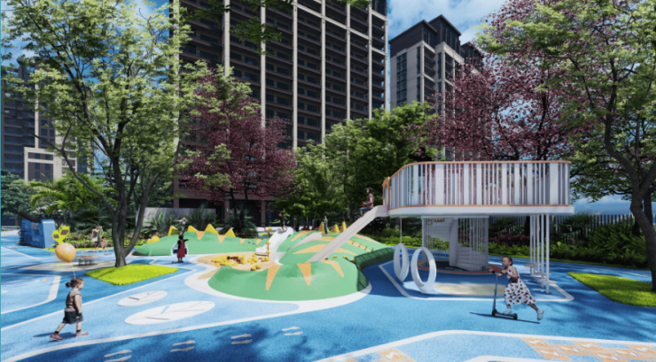 ②项目园区设有休闲广场、林下休闲空间、园区跑道、老年人健身区、成年健身区、儿童活动区、会客厅、书吧、共享厨房、架空层娱乐区等配套。