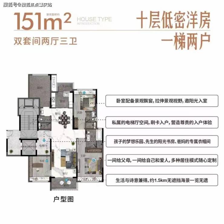 151㎡四房两厅三卫(洋房),奢享墅级双景观阳台