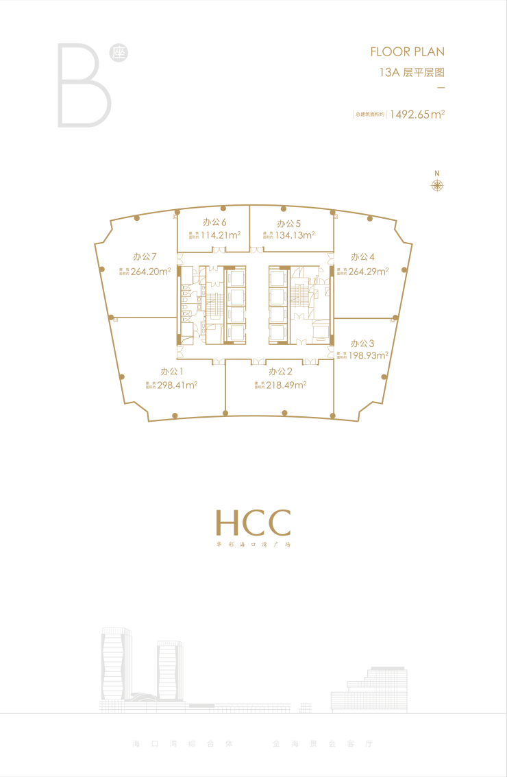 HCC,坐落于自贸港门户海口湾芯地带、世纪大桥畔,一岸对望滨海大道国贸商圈。