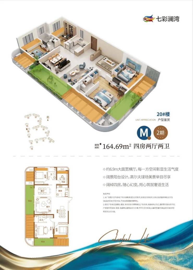 M户型164.69㎡:6.9米横厅、高尔夫果岭景