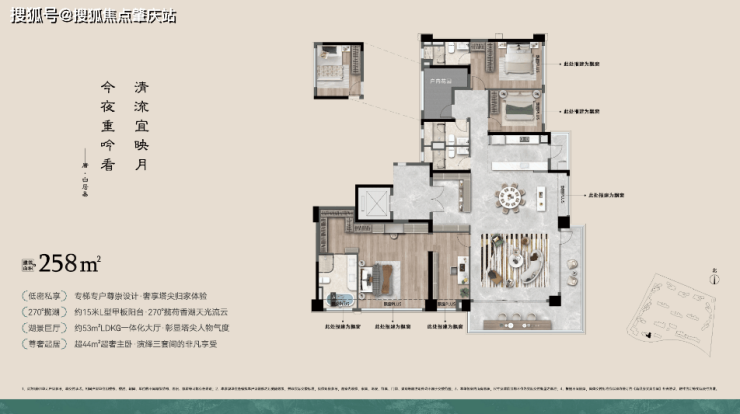 专梯专户 | 约15米L型观景阳台|约50㎡LDKG通厅|双套房设计