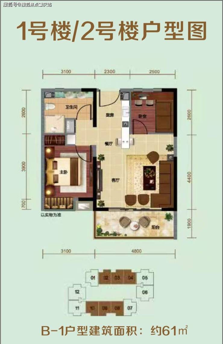 ⭐B-1户型建筑面积:约61㎡