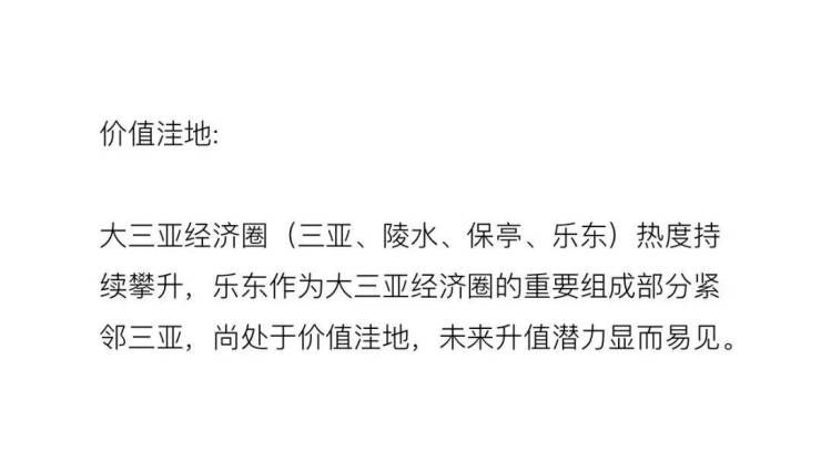 从土地价值属性上,这里是:北纬18° 大三亚 “开发饱和”的外溢 更是“度假在三亚 养生在乐东”的智者的选择。