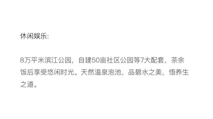 天然的康养家园,53.3亩滨江花园; 6处休闲广场、1个汇演广场;3座临江观景亭;120米滨江木长廊;1座黎族大力神文化雕塑; 150 米环形健身绿地步道;1处应急停机坪。