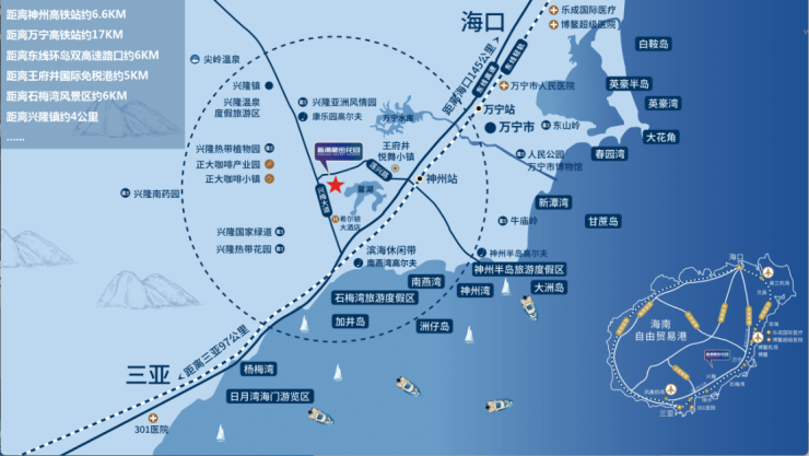 🚄高铁站:距离神州高铁站约6.6公里,万宁高铁站约17公里;
