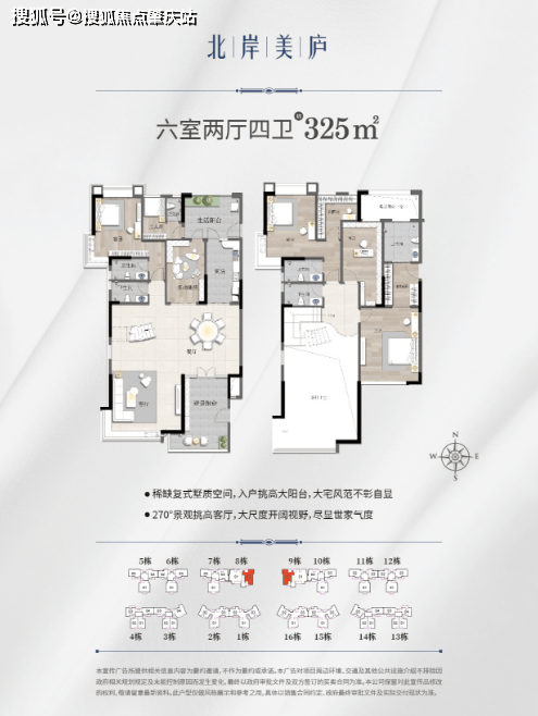 325㎡产品是六室两厅五卫的复式户型,放眼整个市场都是非常稀缺的。其开阔无比的观景视野,及精巧考究的双层空间布局,将生活与繁杂拉开距离,以匠心至诚的空间美学秩序,敬献顶级人居的高奢生活品味。