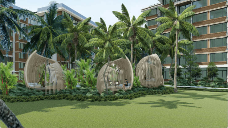 组团内曲折蜿蜒的景观轴线串联起各个组团庭院,整体简洁大气的氛围,舒适自然的花园空间,热带风情的植被设计,营造优雅舒适的海岛热带度假风情,打造高品质人居生活环境。